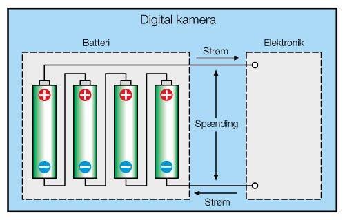 to eller flere celler, så bliver det til et batteri. Parallelkobling