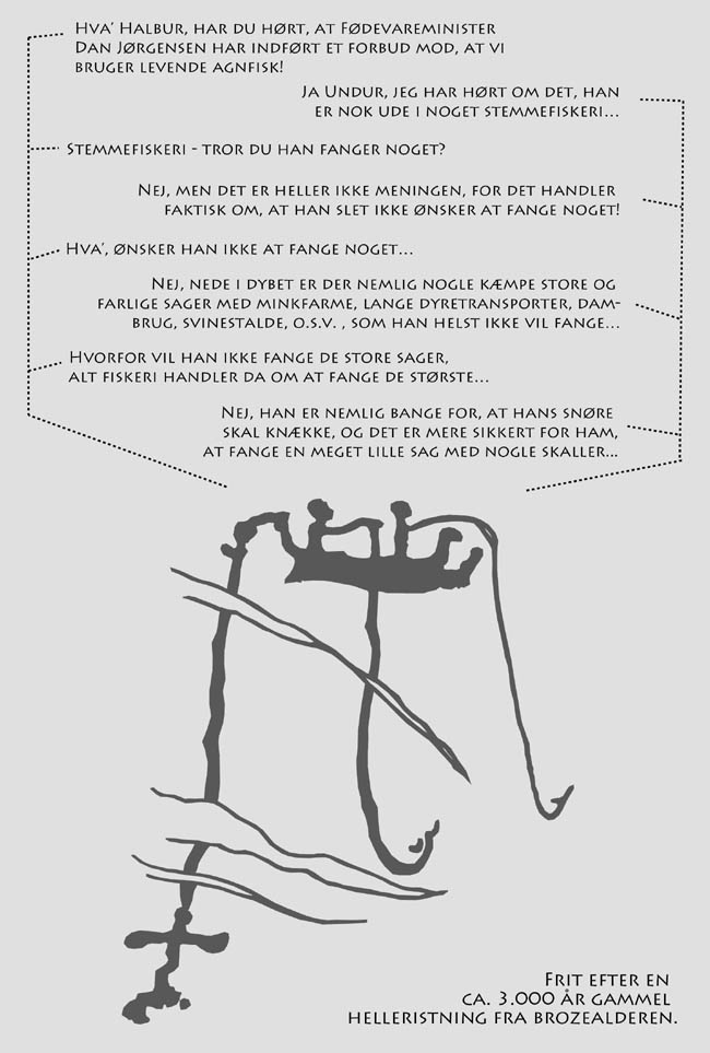 Fødevareminister Dan Jørgensen har været på en shoppingtur i den Dyreetiske rodebutik, hvor han har købt noget signalpolitik Den 6. septemper 2014 afholdt fødevareminister Dan Jørgensen en konference med repræsentanter fra de danske lystfiskere, formålet var, at ministeren gerne ville høre, hvad deltagerne havde af ønsker til fremtiden. På konferencen blev der udvekslet mange varme håndtryk og uddelt masser af skulderklap, og alle deltagerne var tungt læsset med positive forventninger da de drog hjemover. Den 11. septemper 2014 kun fem dage efter konferencen, der spiller fødevareministeren ud med et forbud mod, at anvende levende agnfisk i forbindelse med lystfiskeri. Forbudet træder i kraft via en bekendtgørelse som kommer i starten af 2015. Og det ligner en tanke, at det slet ikke blev annonceret på konferencen, at der ville komme et sådant forbud. Men inden vi konstatere, at det alene er fødevareministeren som har gjort gode miner til slet spil, så skal vi lige gøre os det klart, at forbudet kun er signalpolitik, og en naturlig følge af det udspil som Dyreetisk Råd kom med i starten af året. Hvis vi graver os lidt dybere ned i sagen, så er det åbenlyst, at det slet ikke var Dyreetisk Råd som af engen drift havde fået ideen til, at det skulle synes en hel masse om lystfiskeri, og hvilke af lystfiskernes mange fangstmetoder som rådets medlemmer skulle ha' nogle meninger om. Den egenlige bagmand er faktisk Danmarks Sportsfiskerforbund. Det har jo i rigtig mange år været nogle af DSf's kæpheste, at forbundet har ønsket et forbud mod brug af levede agnfisk og bulefiskeri efter torsk i Øresund, samt nogle kraftige reguleringer af put&take fiskeriet. Men ledelsen i DSf har udmærket været klar over, at det kunne give dem en hel masse uro i egne rækker, hvis de alt for åbentlyst havde ført an i kampen mod disse metoder, og derfor har det passet helt fint ind i DSf's kram, hvis de kunne få Dyreetisk Råd til at stille forslagene, og derefter få fødevareministeren til at ta' det politiske ansvar for en lovgivning på disse områder. Det var rent faktisk DSf som oprindeligt lavede oplægget til Dyreetisk Råd, hvor DSf har defineret og beskrevet de metoder og former for lystfiskeri, som DSf mente, det kunne være relevant at få vurderet af Dyreetisk Råd. Og netop derfor var det DSf's gamle kæpheste med brugen af levende agnfisk, bulefiskeri efter torsk, put&take, o.s.v. som fik en tur gennem den dyreetiske mølle. DSf undlod meget behændigt at spørge Dyreetisk Råd om dets holdning til, at det blandt forbundets medlemmer er en udbredt praksis, at lystfiske efter havørreder og laks som er trukket op i åerne for at gyde. Og DSf var heller ikke interesseret i at høre, hvordan rådet ville forholde sig til, at gydefiskene i åerne bliver brugt som legetøj, der fanges og genudsættes efter endt fight, når kvoterne for den rødlistede laks er opbrugt. Det er tillige meget tankevækkende, at Bengt Holst som er formand for Dyreetisk Råd også er direktør for Københavns zoologisk have, hvor han holder vilde dyr indespærret, blot for at tjene penge på, at der er en masse mennesker som synes det er sjovt, at gå rundt på perlegrusstier og se på vilde dyr, som hele deres liv må leve i menneskeskabte tableauer uden naturlige skjulesteder. Læg i øvrigt mærke til, at Dan Jørgensen ikke har turdet røre ved problemerne i forbindelse med pelsdyravl, de lange dyretransporter, burhøns, svinestalde, o.s.v., det er ellers områder, hvor Dyreetisk Råd har påpeget, at der er meget store problemer med dyrevelfærden. Jeg vil runde af med at konstatere, at naturen er både grusom og brutal, og som lystfisker skal man altså ikke ha' en hel masse kvababbelser, når man selv vil fange sine fisk, og på den helt naturlige måde være det sidste led i fødekæden. Alternativet er jo, at man køber en pakke dybfrosne rødspættefileter i supermarkedet, hvor man som forbruger helt er fri for at ta' stilling til etik og dyrevelfærd. Og derfor mener jeg, at det er utroligt verdensfjernt, når Dyreetisk Råd og Fødevareministeren slet ikke forholder sig til, at de danske lystfiskere ikke er en flok tåber, men derimod fornuftige mennesker, der selv kan tænke og ta' de fornødne hensyn til de fisk som de fanger. Til slut vil jeg sige, at jeg ikke selv anvender levende agnfisk i forbindelse med mit eget lystfiskere, men det forhindrer ikke, at jeg godt kan synes, at det er meget dumt at forbyde metoden, politikerne bør nemlig ikke vedtage love og regler, som de slet ikke kan og vil håndhæve. © 21. september 2014 Niels Riis Ebbesen |